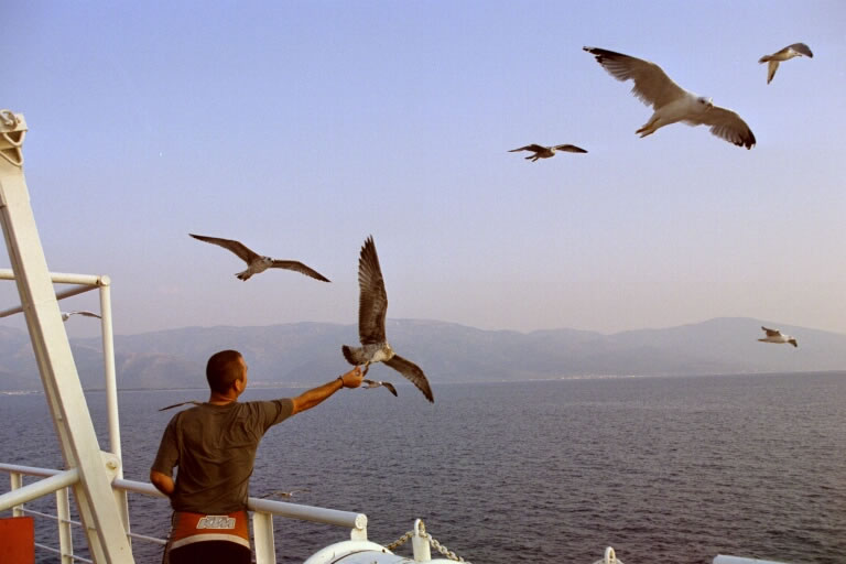 Rückfahrt mit der letzten Fähre von Thassos nach "Neos Paramos". Von unserem Zwipf hatten wir reichlich wenig.