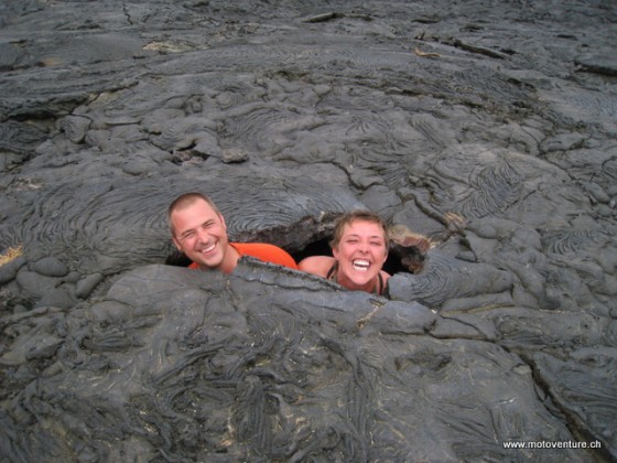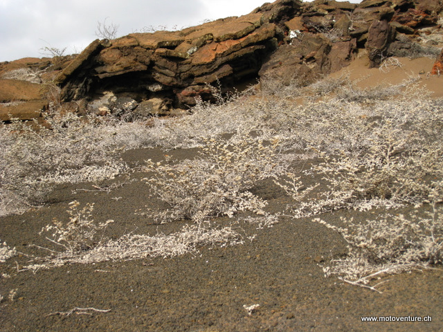 Die Leguane der Insel passen sich ihrem Untergrund an und sie sind so gut getarnt, dass wir aufpassen muessen, nicht auf einen drauf zu treten. Nur gemaechlich bewegen sie sich. Hauptsaechlich dann, wenn sie Nahrung wittern.