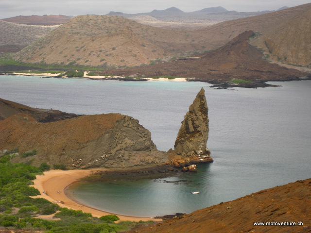 Unser Kahn liegt in der idyllischen Bucht von Bartolome, wo wir uns beim Schnorchel- und