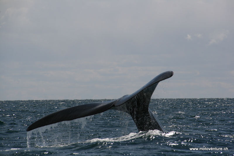 keine zwei Meter von uns entfernt, seine Kreise zieht und springt. Die Wale sind vom Boot aus sehr gut