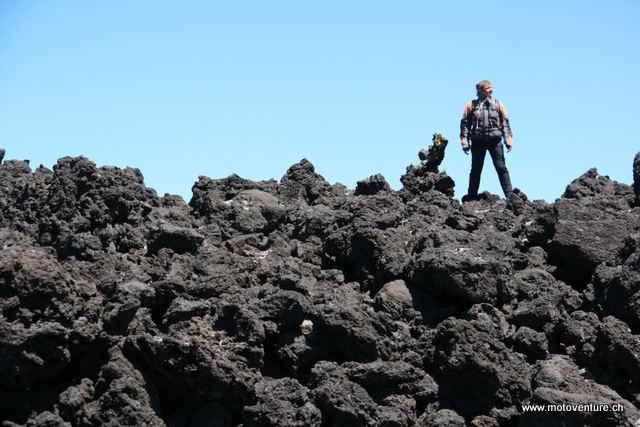 Jacky auf der meterhohen, ausgekühlten Lawa…