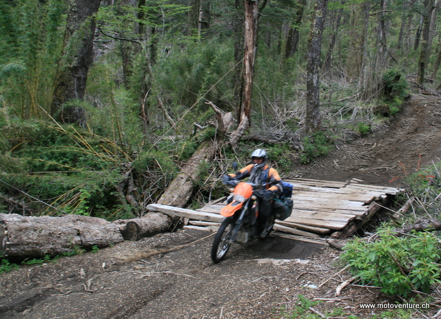 Plötzlich gibt Leulis Kati ein besorgnis erregendes Klappern von sich. Irgend was stimmt nicht mehr mit dem Ventilspiel. So fahren wir ziemlich zügig nach Puerto Montt und suchen den dortigen KTM-Mech auf. Schnell ist das Ventilspiel eingestellt, doch Reifen sind keine innerhalb von nützlicher Frist zu organisieren, so dass wir sie telefonisch nach Punta Arenas (2500km südlich) bestellen. Kein Problem heisst es zu dieser Zeit. Wir verlassen uns auf diese Aussage.
