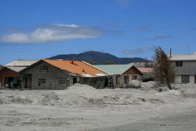 Nicht soviel Glück hatten die Einwohner von Chaiten, die anfangs Jahr ihr Hab und Gut beim Vulkanausbruch verloren. In der ganzen Stadt liegt auch heute noch meterhoch Asche und Schlamm. Die Häuser sind nicht mehr bewohnbar, da weitere Erruptionen drohen.