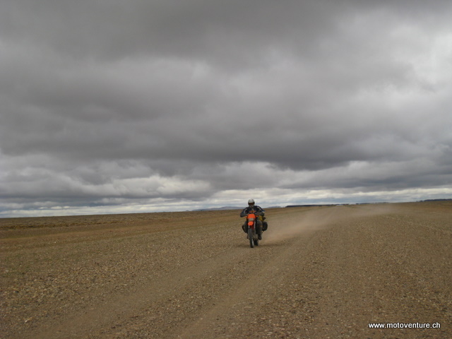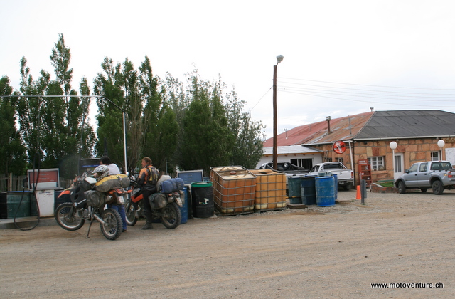 In der nächsten Stadt stocken wir unser Vorratslager auf, denn wir wissen nicht, wo wir die folgenden Tage unterkommen werden. Langwierige aber nicht langweilige Strecken führen über die verlassenen Grenze, Entrada Baker, nach Argentinien. Wir legen vierhundert Kilometer zurück und treffen nur auf eine einzige Estancia und eine Tanke. That’s it. Danach folgen wieder hunderte Kilometer Pampa bis zum prägnanten Fitz-Roy- Massiv.