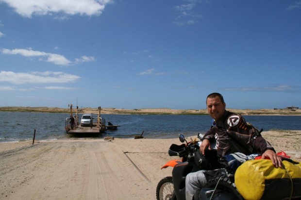 Nach den paar Tagen im Hinterhof von Dakarmotos, machen wir uns am Montag, 26.1. auf den Weg Richtung Uruguay. Schnell noch eine neue Thermarest-Matte gekauft, denn die eine ist am 2. Tag geplatzt. Vermutlich war sie einfach nicht suedhalbkugelfaehig… Die neue ist doppelt so dick und auch doppelt so bequem und wird in Zukunft den vorausfahrenden, am Abend, fuer die Muehe belohnen. Dann noch rasch zur Post, um einem Kollegen den mitgebrachten Appenzeller zu schicken. Weiter gehts dann mit der Schnellfaehre ueber den Rio de la Plata nach Colonia del Sacramento in Uruguay. Die Einreise ist fast so einfach wie in Europa. Der Grenzbeamte fuellt ruckzuck einen Zettel aus, Stempel in den Pass, noch ein “Smile” fuer den Beamten und schon sind wir drin…