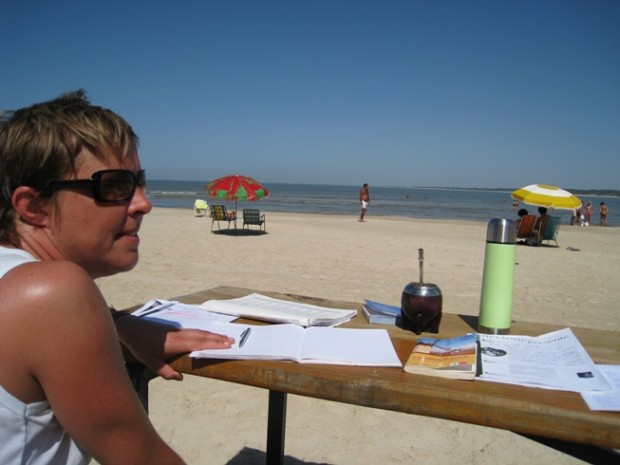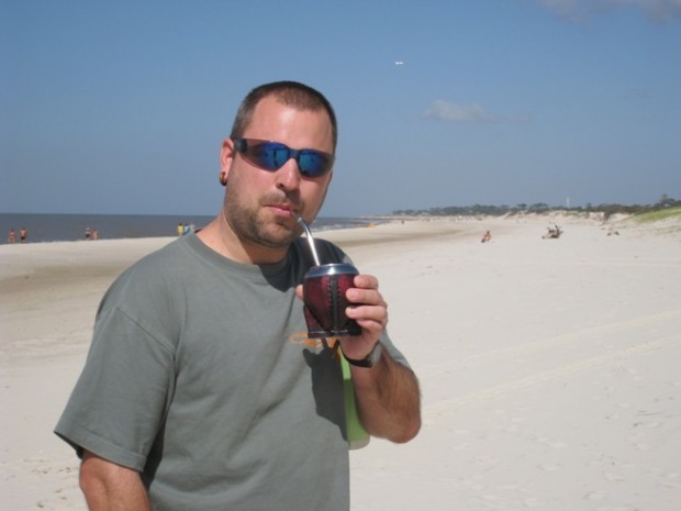 2. Investition: eine Themoskanne (100% Edelstahl) um wie die Einheimischen an jedem erdenklichen Ort seinen Mate zu schluerfen. Der Mate wird einigemale aufgegossen und man bekommt sogar am Strand Nachschub an “aqua caliente”.