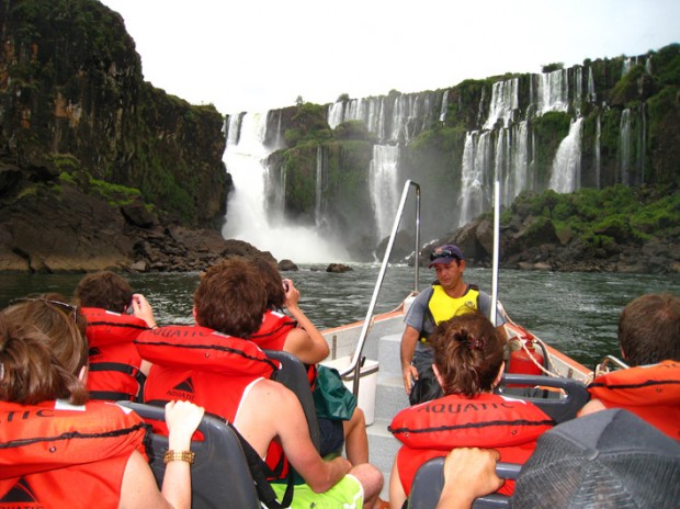 Zwei Tage lang wandern wir um die Faelle herum und goennen uns zum Abschluss noch eine Action-Bootstour mitten in die Wassermassen hinein. Pudelnass und einen Adrenalinschub reicher entsteigen wir dem Boot.