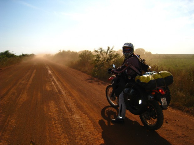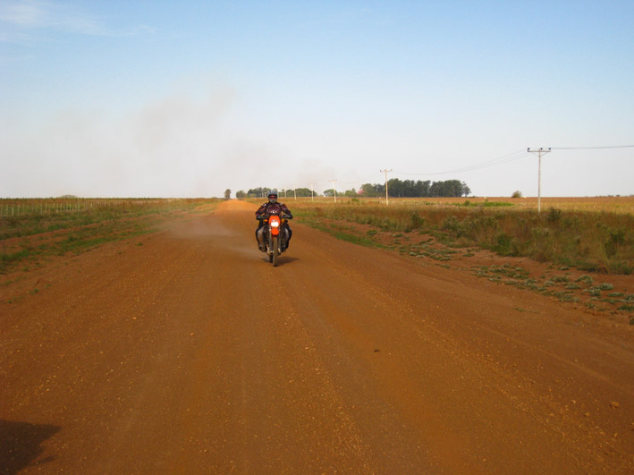 In der Provinz Missiones begleiten uns viele Pisten mit tiefroter Erde. Die Motorraeder, unsere Klamotten und wir sind ploetzlich im Einheits-Look: Rot